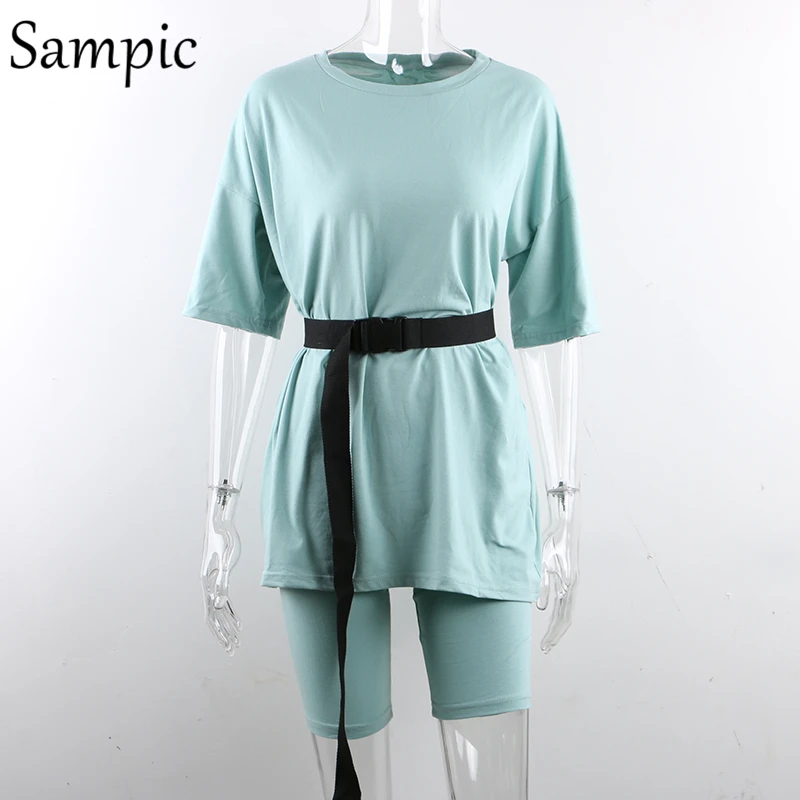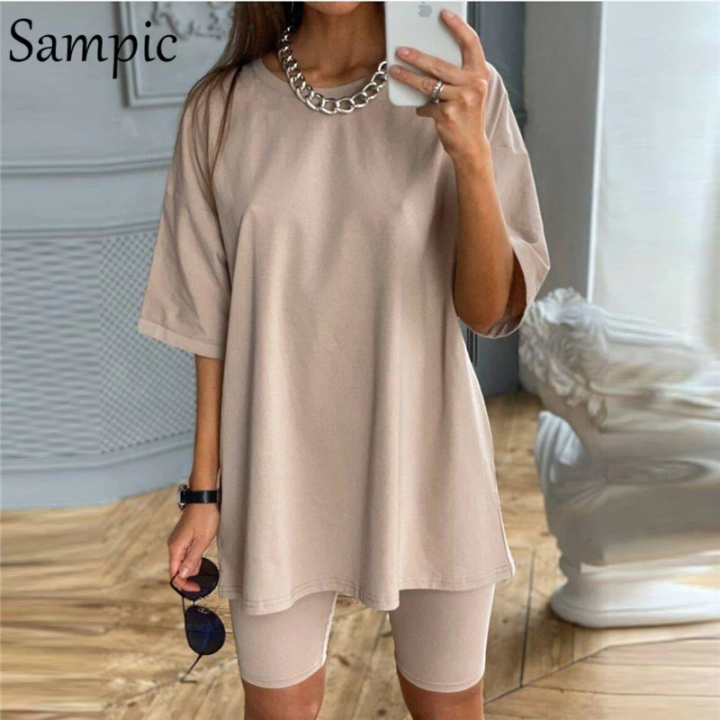 Casual O Neck Short Sleeve Shirt Top and Bodycon Shorts Two Piece Set